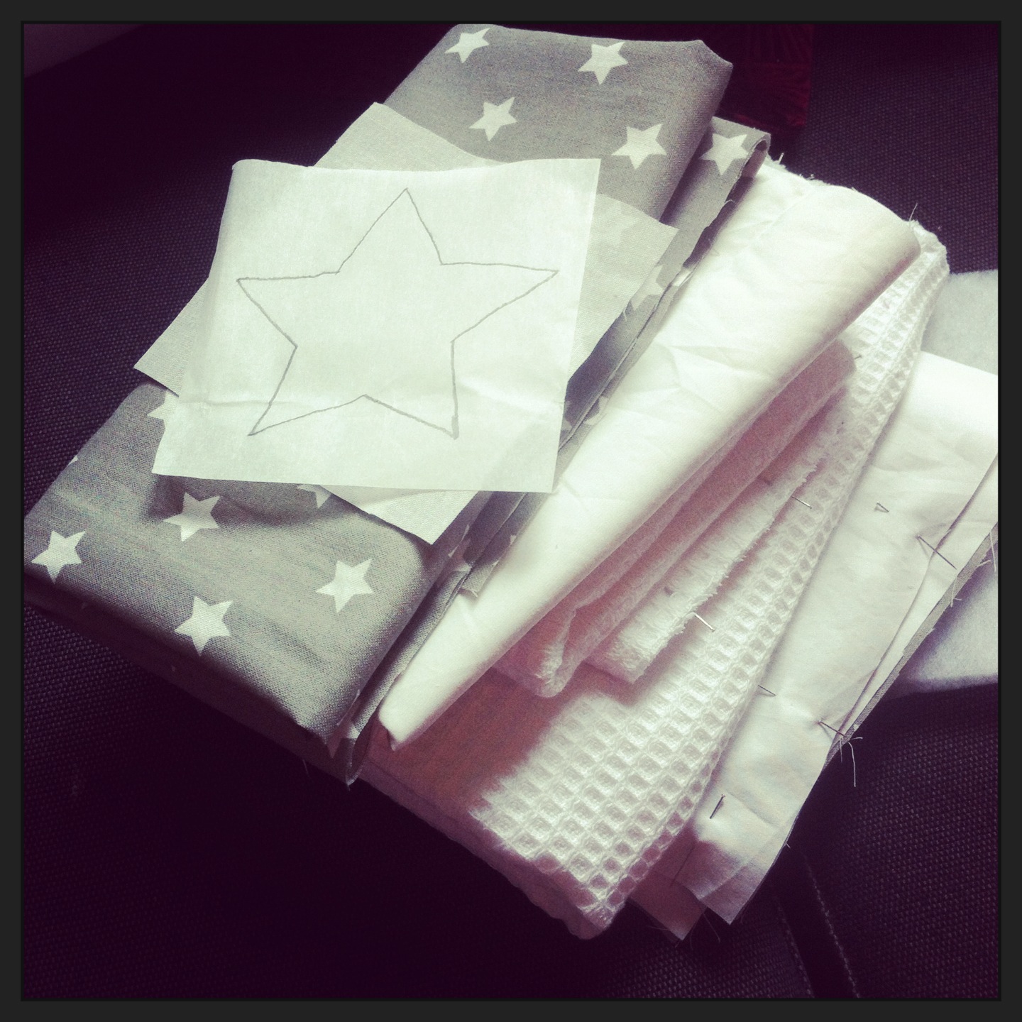 Le tissu étoilé gris et le tissu blanc viennent du joli site Ma Petite Mercerie