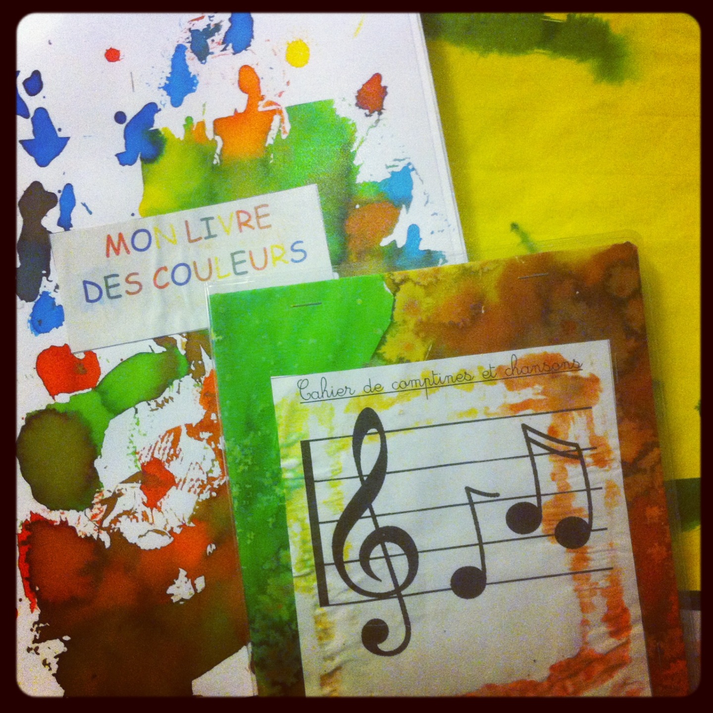 Un joli dossier réalisée complètement par Ma Grande et inspiré d’un livre lu en classe avec la maîtresse « toutes les couleurs » d’Alex Sanders. Chaque couleur (vert, rouge, jaune…) a été travaillées avec différentes techniques: peinture à l’éponge, empruntes de pieds et de mains, gouttes d’encre à la pipette, collage, coloriage… Je suis étonnée et ravie de tout le travail accomplie en seulement quelques semaines! Et surtout, Je suis comblée de la sentir si heureuse. En allant se coucher elle m’a dit « tu montres pas à Papa, c’est moi qui lui montre, d’accord? »