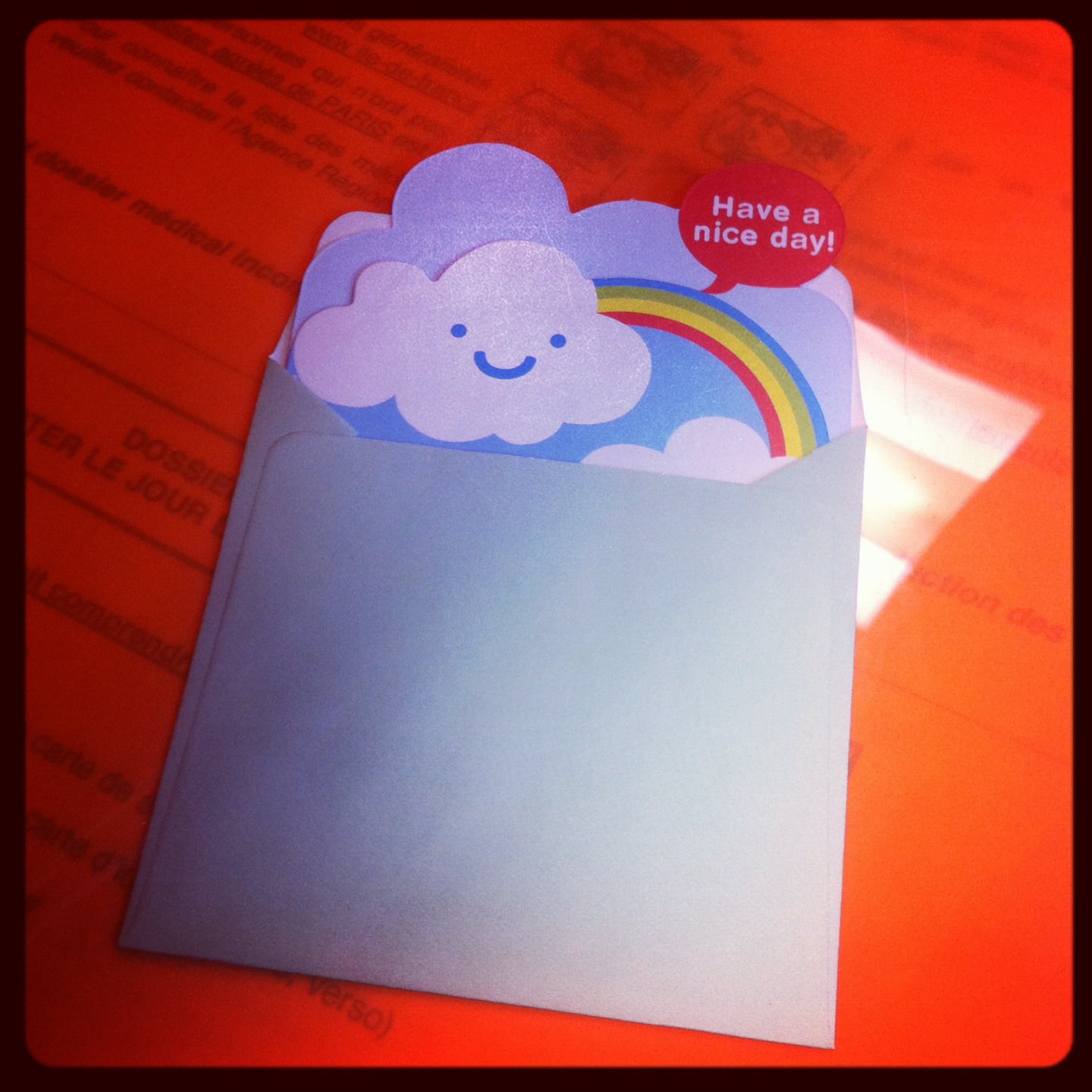 Une petite carte laissée par Lulu dans mon bloc note et découverte en arrivant à l’école 💕