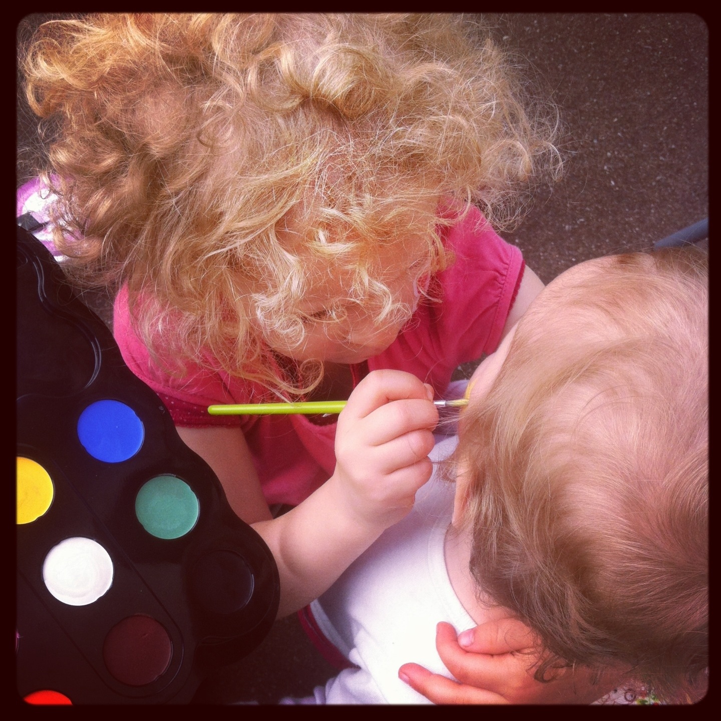 – Ma Grande qui décide de maquiller sa sœur pendant que nous grignotons un apéro improvisé sur le banc de notre cour d’immeuble;