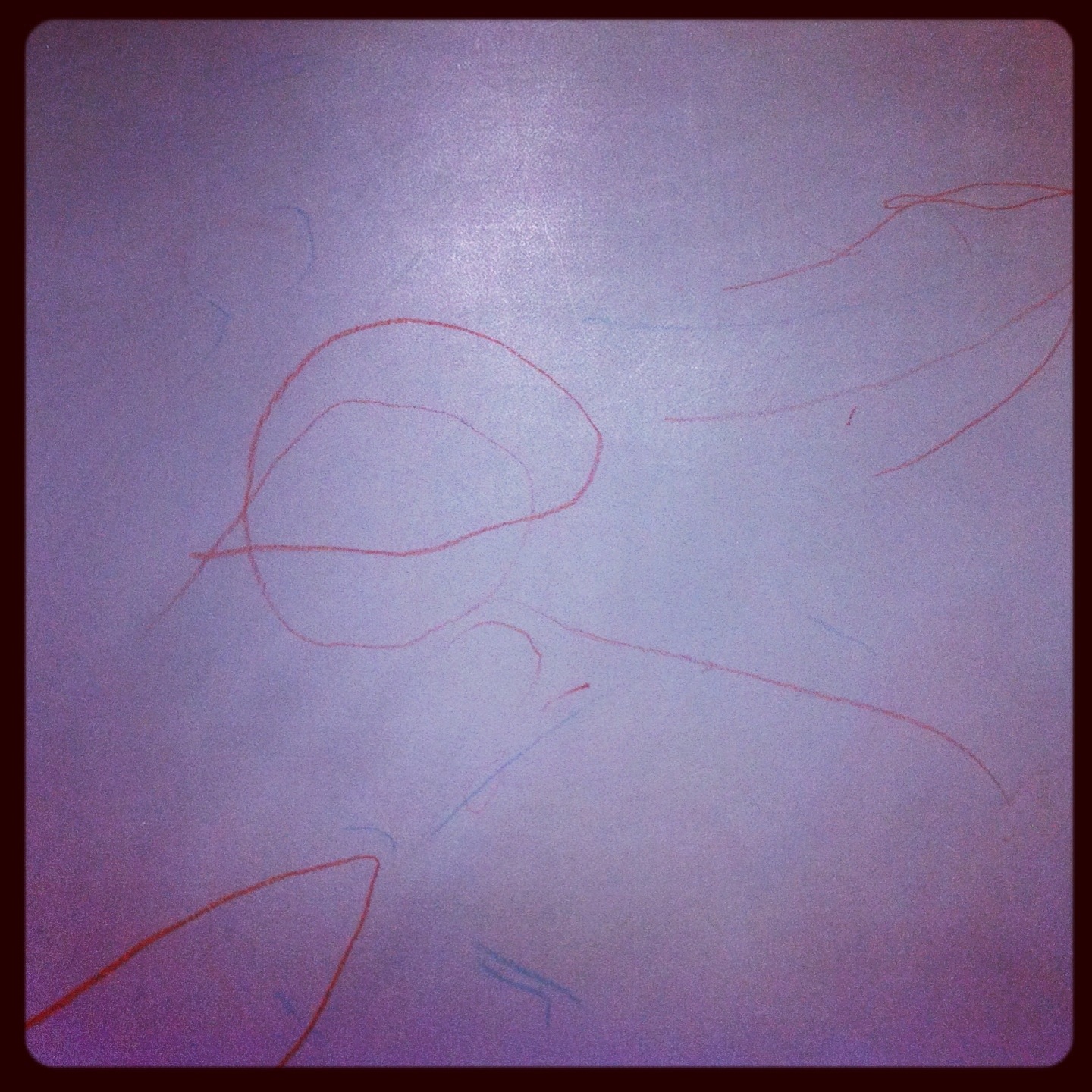 Ma petite de son côté a elle aussi voulu participer et a aussi fait un dessin pour le « verssaire » de son Papa: des virgules, des ronds, parce que comme le dit sa grande sœur « Ma Petite, c’est une professionnelle des ronds! »