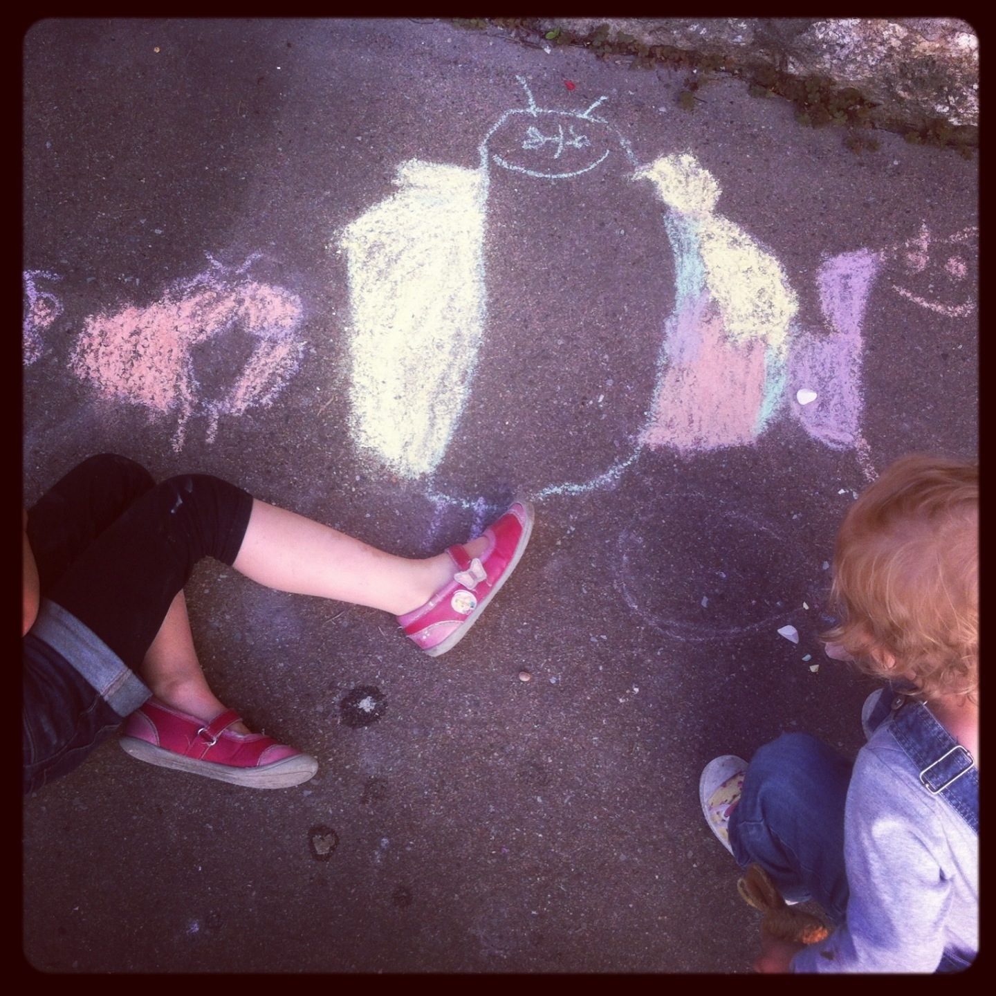 Une fête des voisins, notre cour décorée à la craie par les enfants, une balade au bord de l’eau, beaucoup de chocolat, des meringues, une fête des Papa colorée, des sourires partagés = un week-end heureux chez les Lulus ☀