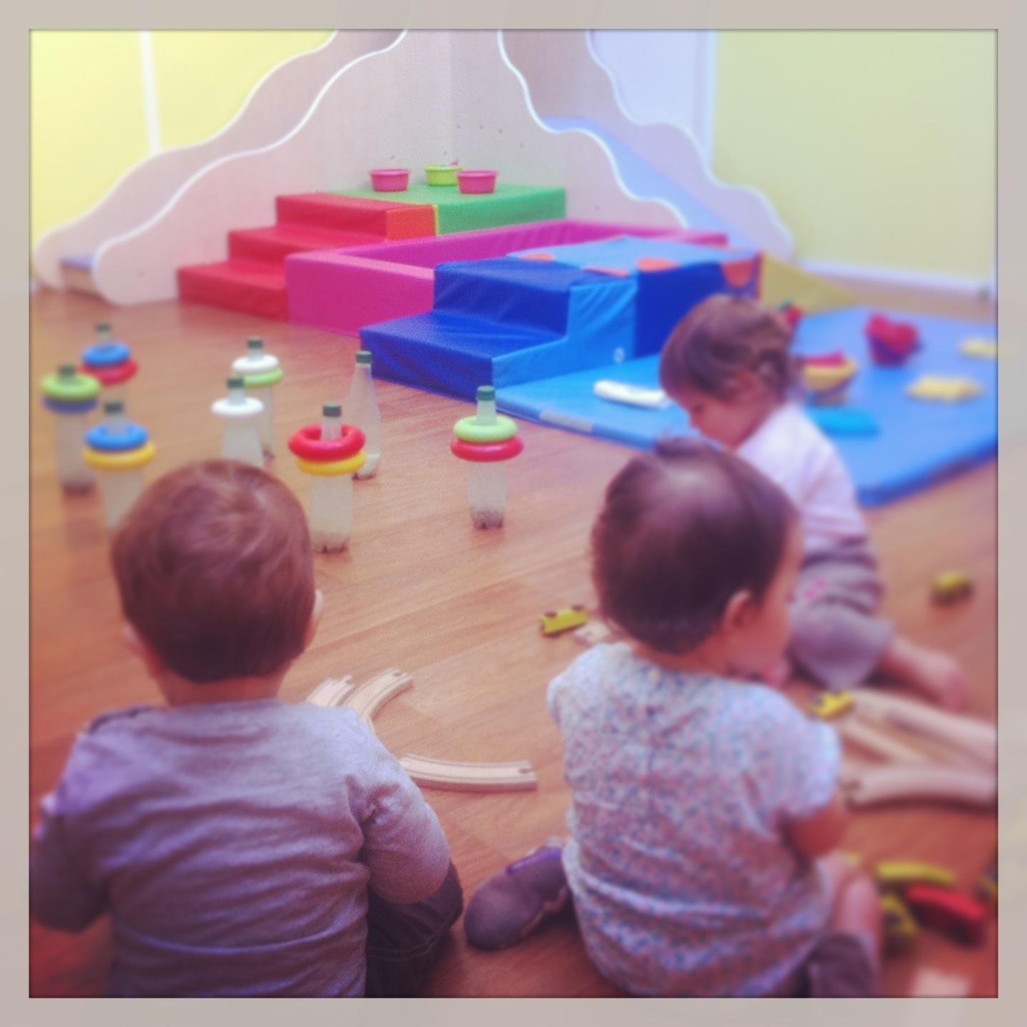 – l’autonomie est favorisée par l’aménagement de l’espace de vie, les jeux sont choisis en fonction du développement des enfants, on respecte les besoins et le rythme de chacun (toboggan, blocs moteurs, maracas, boîtes gigognes, dînette…)