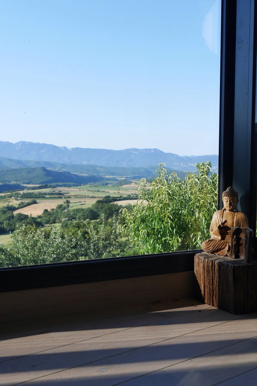 Vue de la salle de yoga sur la vallée