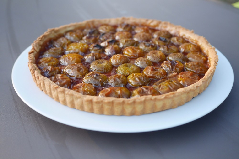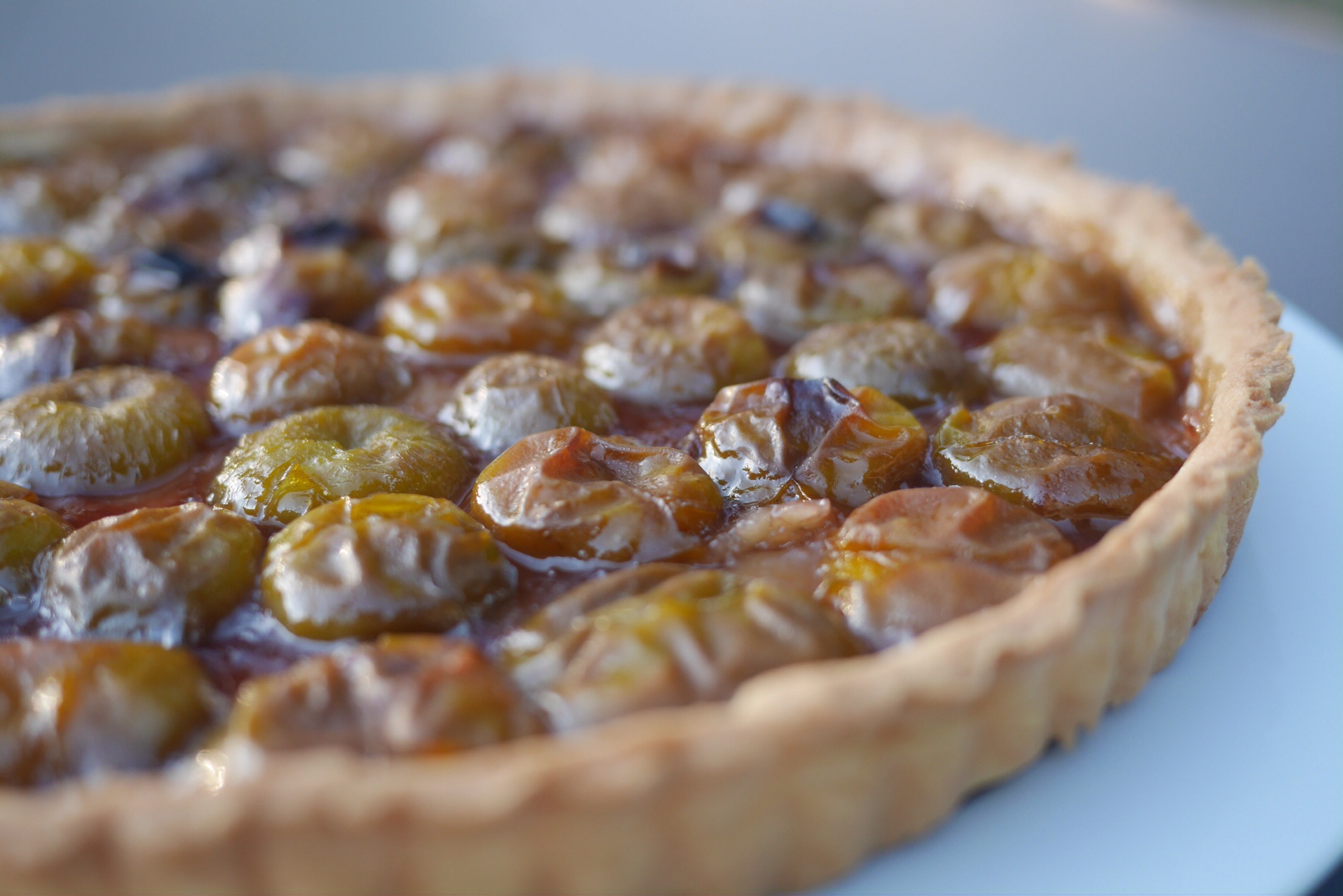 Avant la réalisation de la tarte, mon grand bonheur c’est d’aller cueillir les fruits directement sur les arbres du jardin : mirabelles ou reine-claude. Je secoue un peu l’arbre, je regarde tomber les fruits et les filles se précipitent avec plaisir pour ramasser les précieux trésors et me les confier!