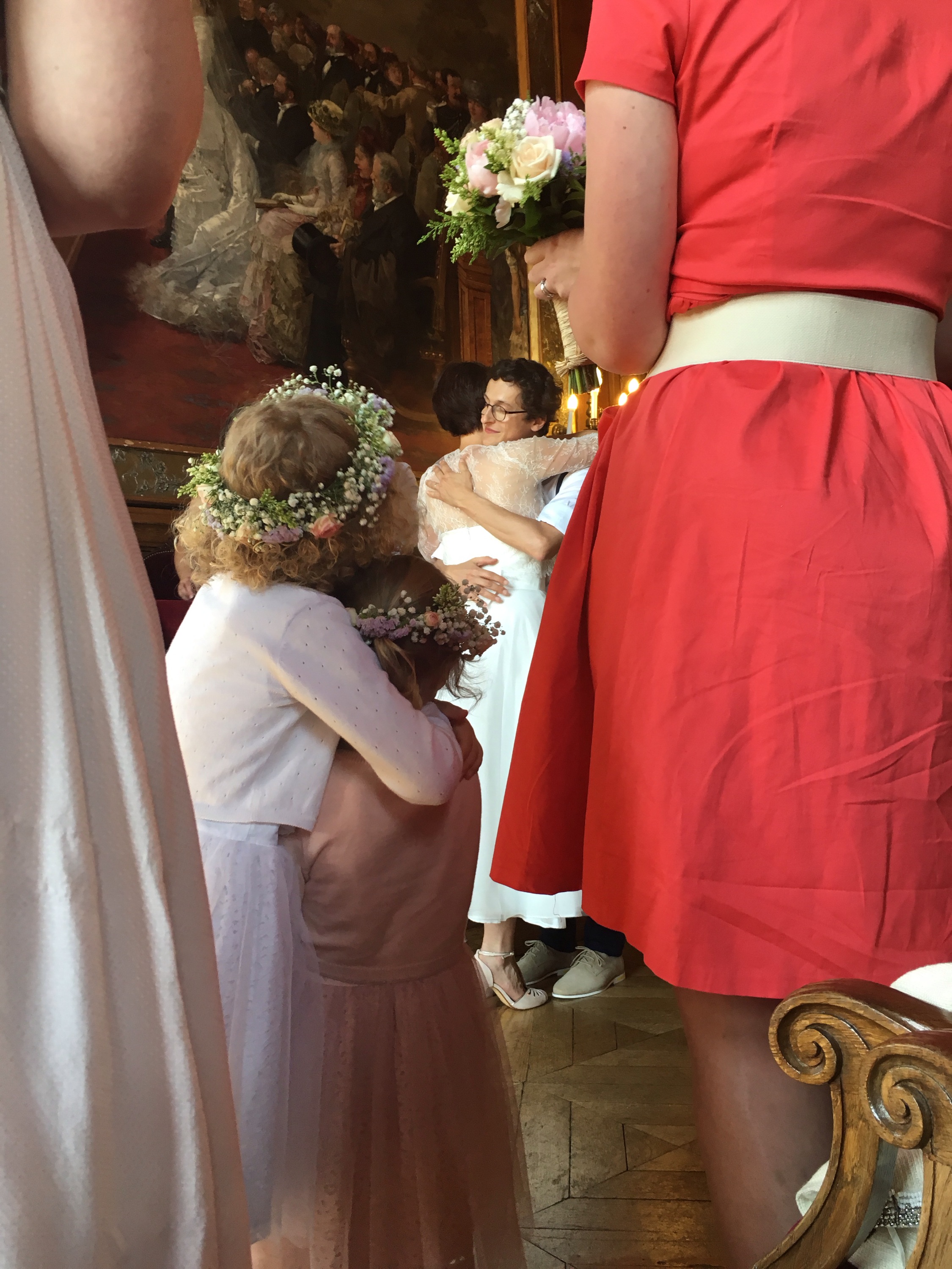 Lorsque nous sommes devenus parents, c’était une évidence que notre couple allait évoluer ; et c’est sûr que ce n’a pas toujours été facile. Et pourtant, j’ai le sentiment que nous avons atteint une forme d’équilibre quasi-parfait et depuis je savoure la vie de famille avec toi et nos filles. Et maintenant, ayant trouvé cet équilibre, nous avons tout le loisir de faire évoluer notre couple de nouveau : je suis tellement heureux que nous puissions nous marier aujourd’hui ! Et comme je sais que tu aimes bien cette phrase et je pense que le moment s’y prête: Aujourd’hui nous vivons le premier jour du reste de notre vie!