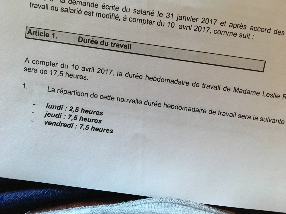 Finalement ca y est, après plusieurs mois de négociation avec mon employeur, d’attente, d’avancées, de marche arrière, voilà, enfin je travaille à mi-temps à la PMI!